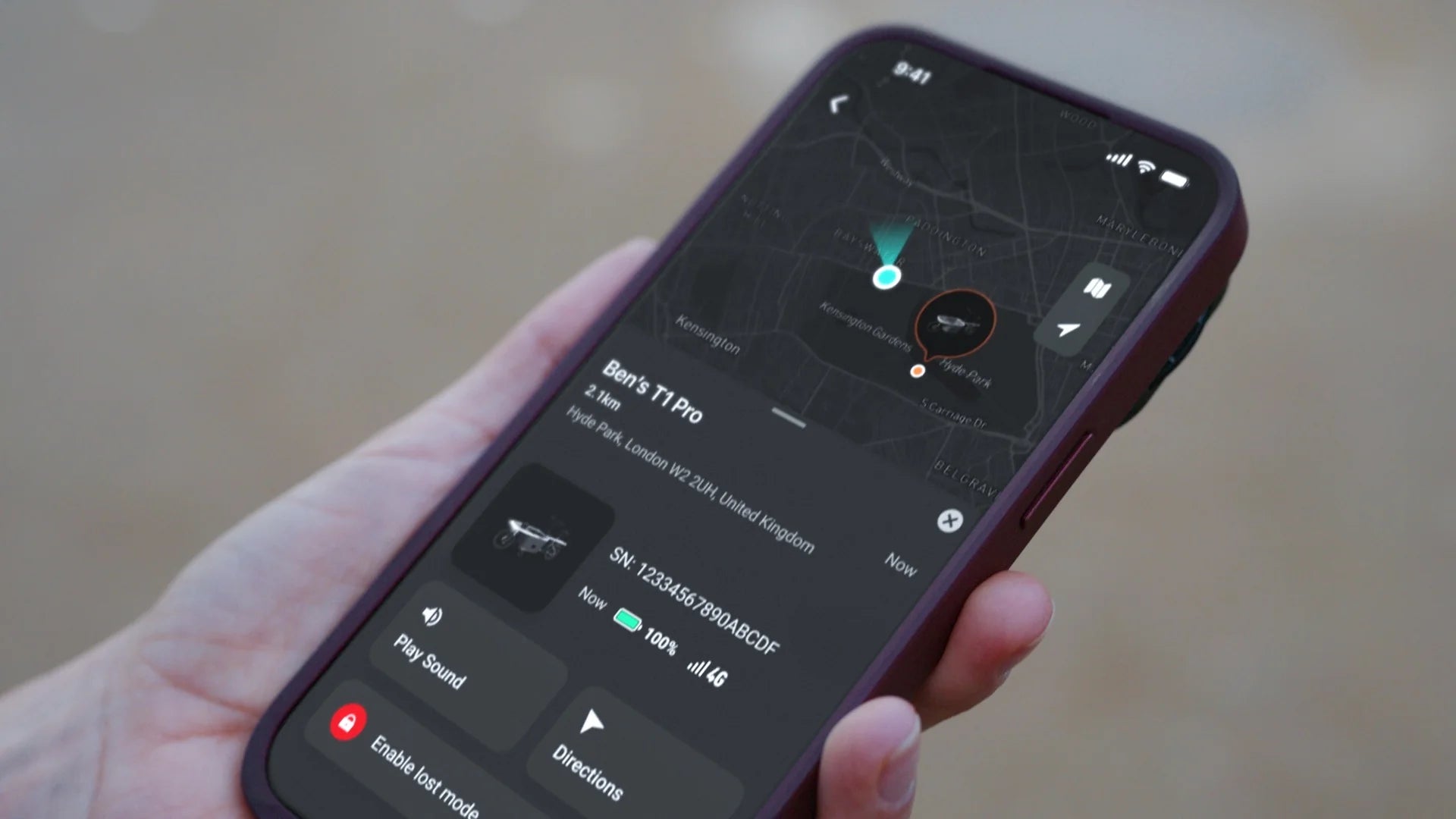 Verfolgen und lokalisieren Sie Ihr T1 Pro jederzeit bequem mit dem integrierten GPS-Tracker und der TARRAN App
